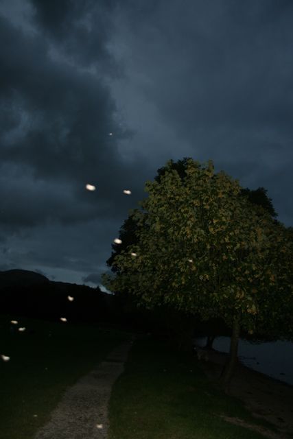 We camped at Coniston Water, and fell asleep almost immediately after our delicious gnocchi with sauce dinner and a walk along the lake including taking night pictures of midges – I never knew that they reflect flash light like that! (made up a little bit for the Malcolm thing)