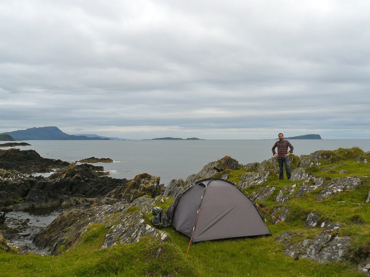 Bellies full, we went to the Isle of Seil at the end of B844 (over the pretty Atlantic bridge, which for a while I thought we couldn’t find, but it was just a little bit further yet), little village called Ellenabeich. Short walk got us up on a nice little ridge above the village with beautiful views over the sea and the coast. I suggested camping right there, but wasn’t taken seriously by the rest of the expedition team, which didn’t feel like carrying the tent and other stuff up on the ridge, and so it was agreed to camp by the sea.